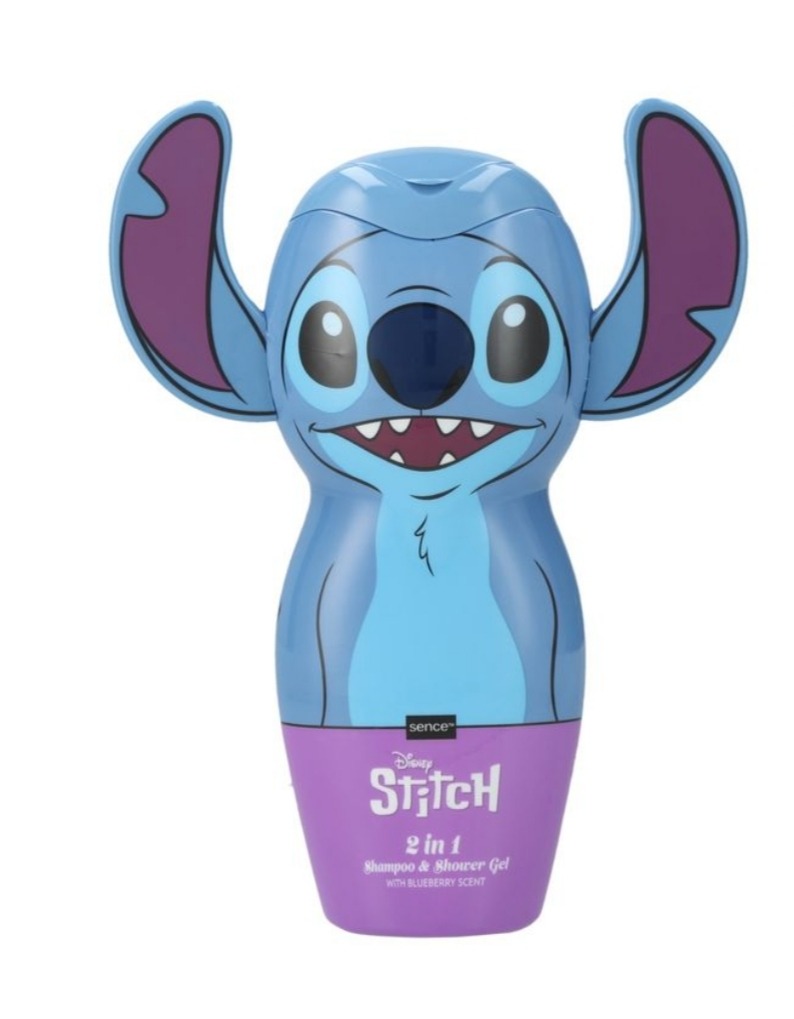 Es un gel de ducha + champú 2 en 1 (es decir, sirve para lavar tanto el cuerpo como el cabello) con el personaje Stitch (y a veces su compañera Ángel) en el envase.