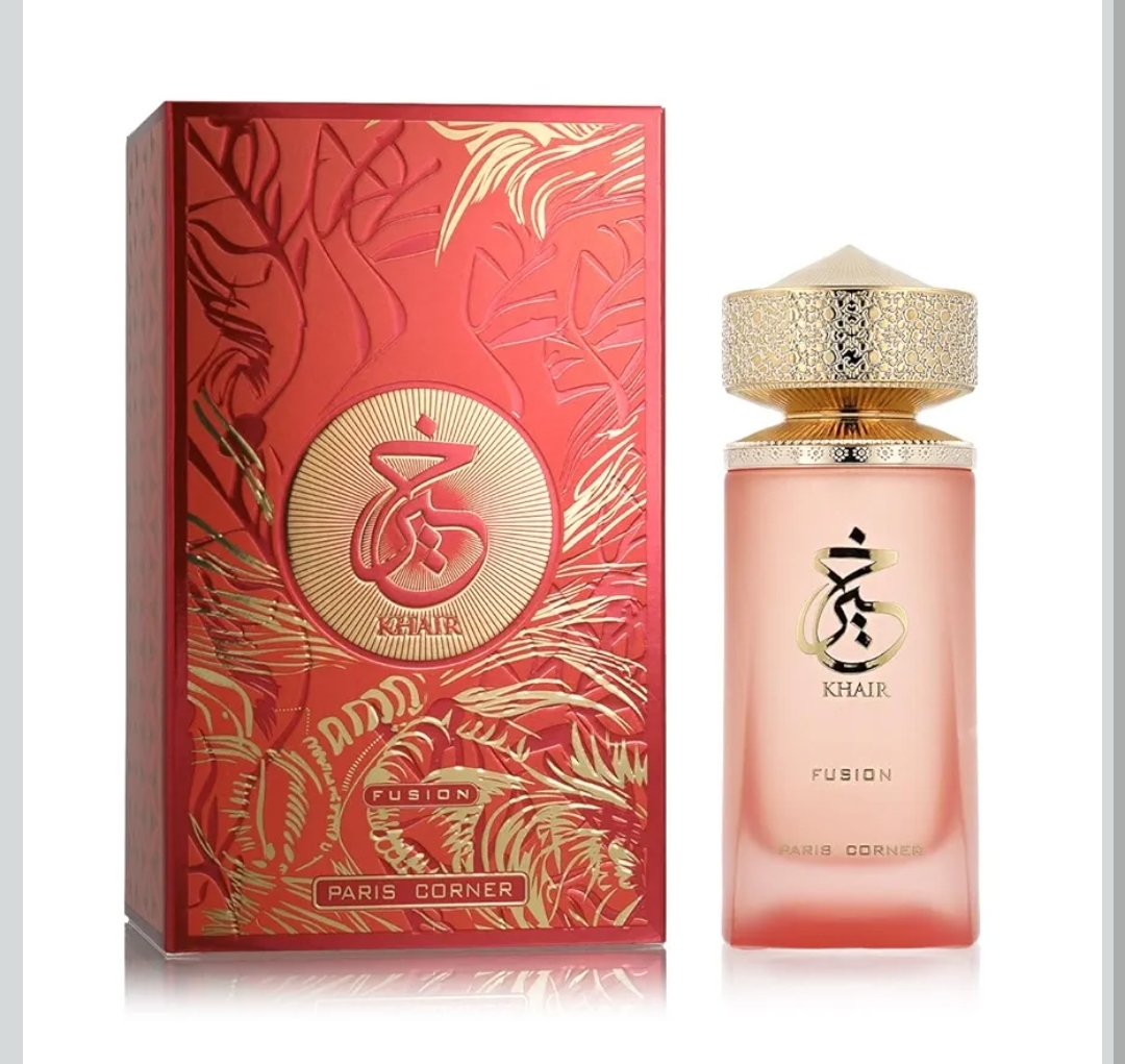 Khair Fusion de Paris Corner es un perfume vibrante y envolvente que combina la jugosidad chispeante del lichi y la grosella negra con un corazón floral de jazmín y rosa, para fundirse al final en una base cálida de vainilla, azúcar moreno y maderas suaves, creando una fragancia unisex que equilibra dulzura, elegancia y modernidad en un solo acorde.