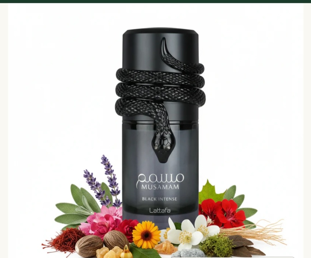 Musamam Black Intense es una fragancia árabe amaderada, aromática y moderna creada por Lattafa en 2025 con el perfumista Jordi Fernández. Es un perfume unisex con carácter fuerte, sofisticado e intenso, ideal para quienes buscan un aroma elegante y con personalidad.